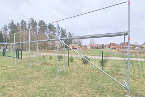 New galvanized steel scaffold, manufacturer 'Plettac'.