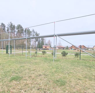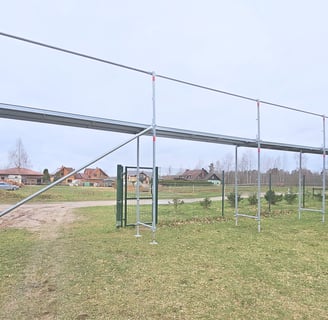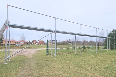 New galvanized steel scaffolding, manufacturer 'Plettac'.