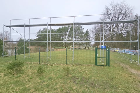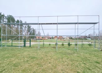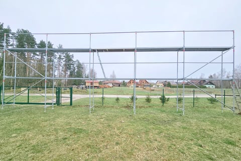 New galvanized steel scaffolding, manufacturer 'Plettac'.